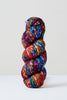 Carefully cut the knotted ends apart without cutting the working yarn strands and remove the contrasting pieces holding the hank together.