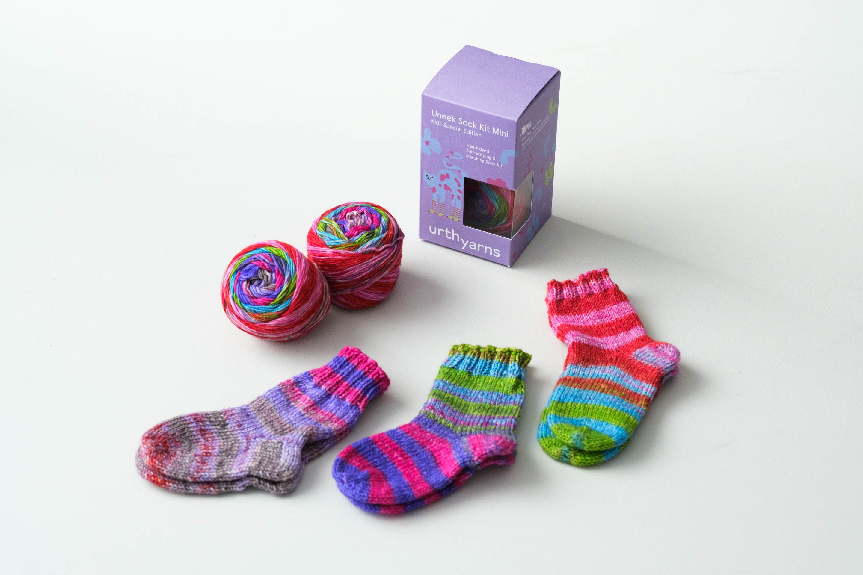 Scaling down our stripes to fit the smallest of feet. 7 of our favorite sock colorways now available in 60 g kits.